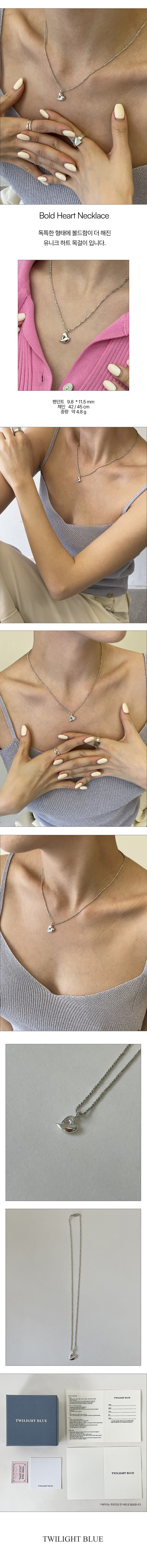 독특한 형태에 볼드함이 더 해진 유니크 하트 목걸이 입니다.